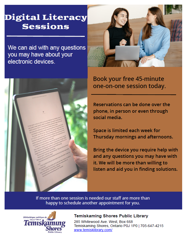 Temiskaming Shores Library Digital Literacy Sessions - This event has already occurred