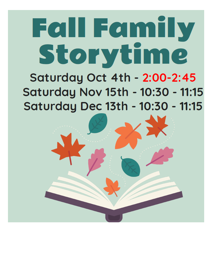 The Temiskaming Shores Public Library is happy to present our Fall Family Storytime for 2025. We’ll be meeting in the library’s Programming Room on Saturdays from 10:30 to 11:15 on Novebmer 15 and December 13. Gather your family, from grandparents...